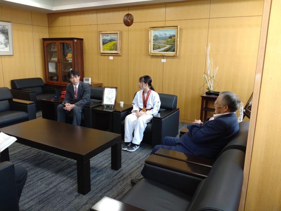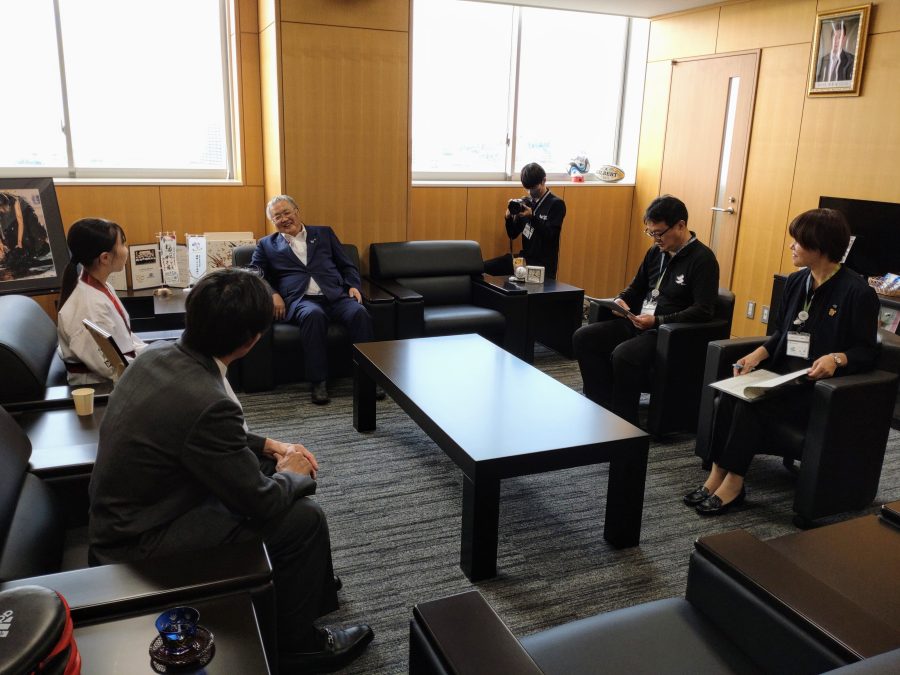 今回も篠原市長をはじめ、その他大勢の方々がいらっしゃいましたが、前回の表敬訪問では遥選手がコリアオープンに向けての抱負を述べている時間より、僕(烈蹴会 道場長)がベラベラと持論を展開している時間の方が数倍長く、後で遥選手から「しゃべりすぎやろ」とダメ出しを食らいました。