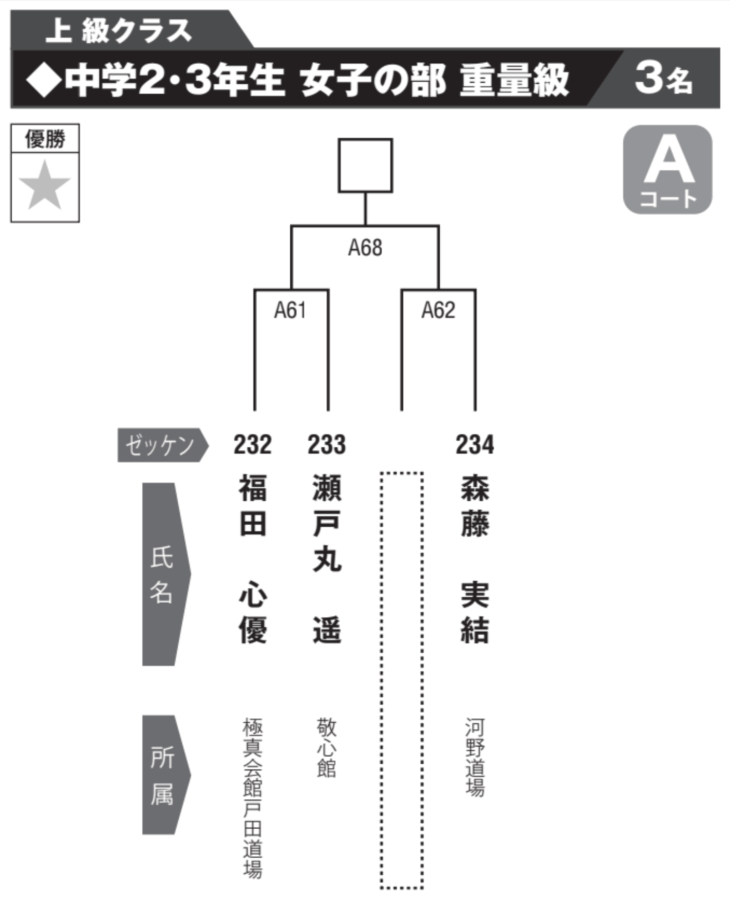 烈蹴会からは、瀬戸丸 遥選手が「上級クラス 中学2・3年生 女子の部 重量級」で出場。