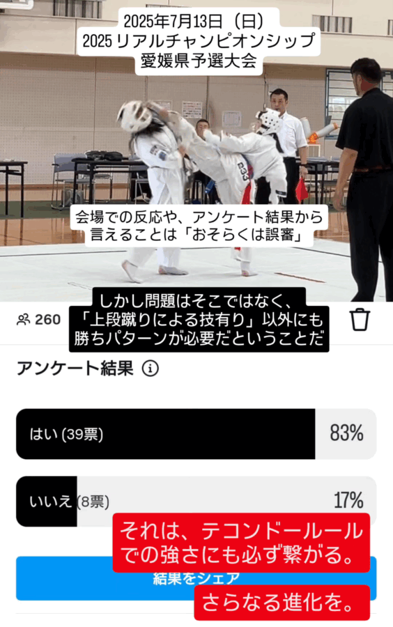 また、「はい」にはフルコンタクト空手の現役選手や指導者が数多く含まれており、逆に「いいえ」にはそういった方たちが含まれていなかったため、やはり誤審だったということになるかと思います。