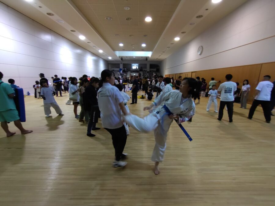 この日は、テコンドーでの遥選手のライバルである空月美(くるみ)選手がわざわざ試合を見に来てくれて、遥選手と一緒にアップをして、セコンド(今大会では3名まで)にも入ってくれました。