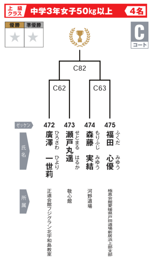 烈蹴会からは、瀬戸丸 遥選手が「上級クラス 中学3年女子50kg以上」で出場。