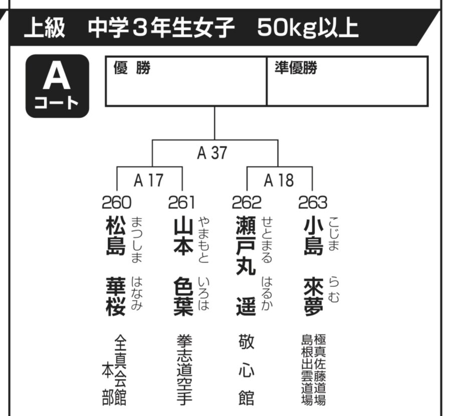 そして、山本選手 VS 松島選手は松島選手の判定勝ちとなり、決勝は遥選手 VS 松島選手となりました。