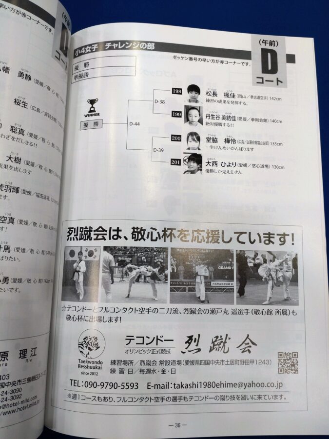 また、今大会では敬心杯に協賛させていただき、烈蹴会の広告を大会パンフレットに載せていただきました。(*^-^)b